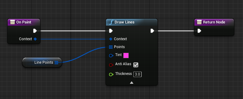 Monitor the line drawing finished event of the UserWidget created earlier and pass the array of coordinates along the line to the current Actor.